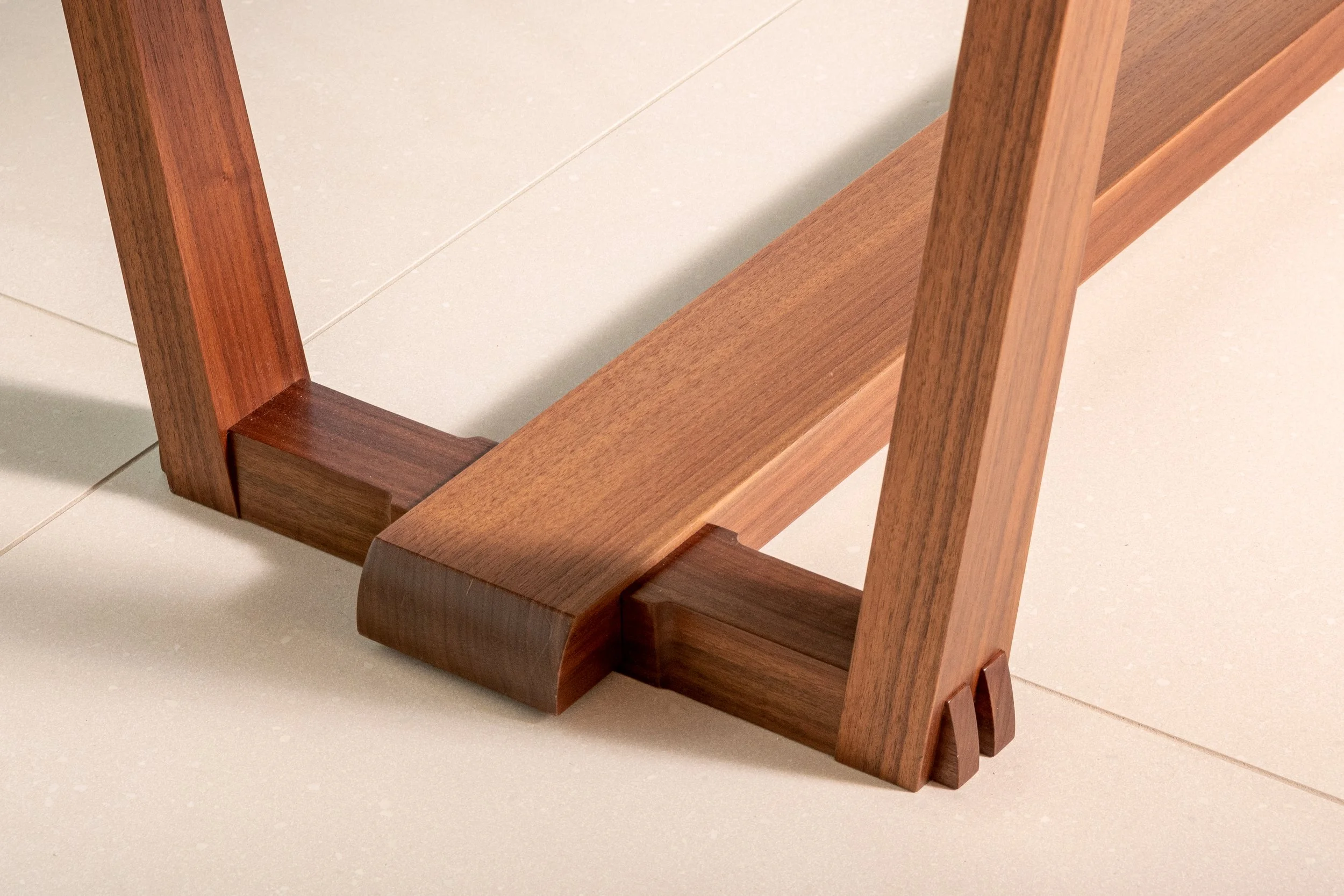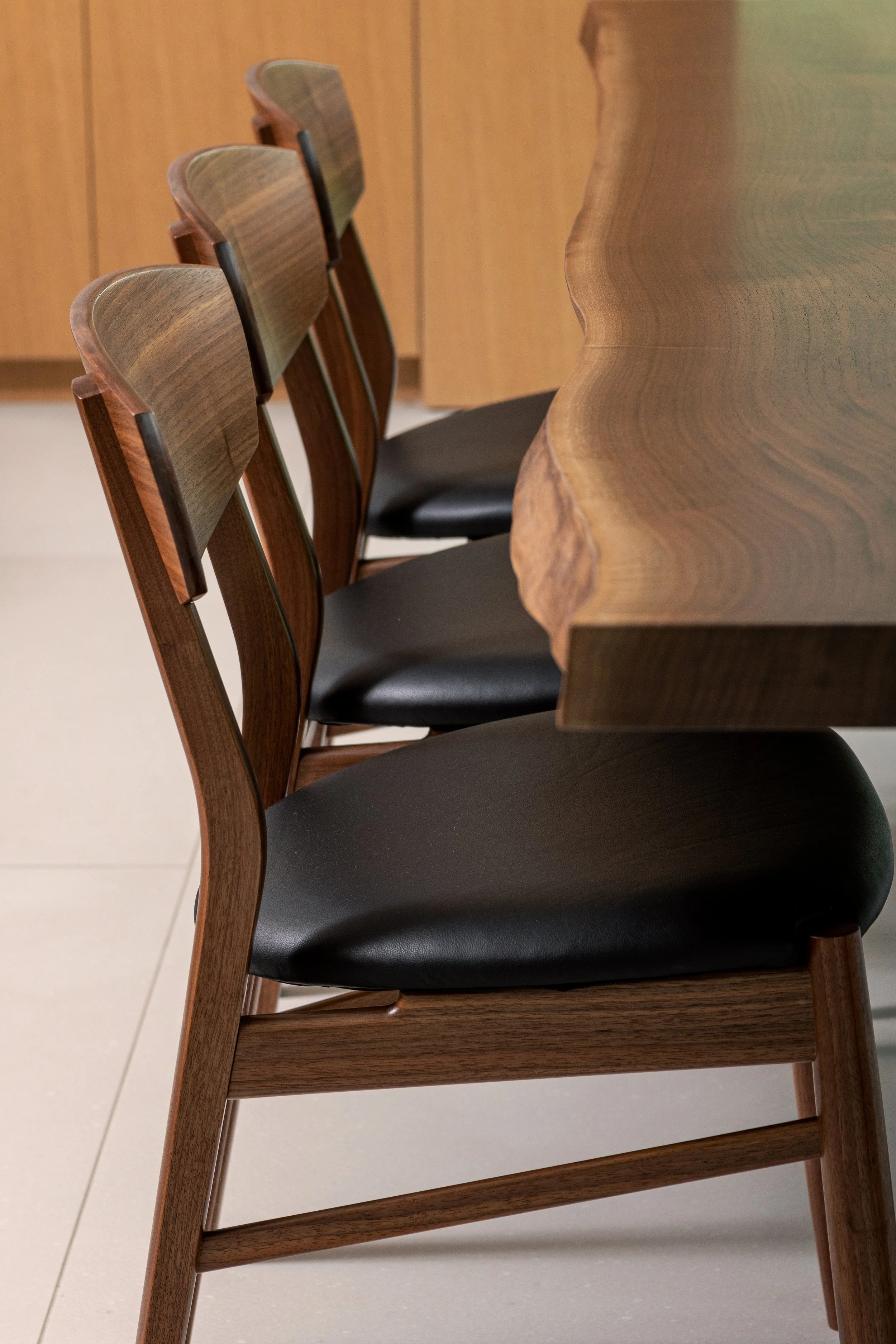 Drawing inspiration from the inimitable George Nakashima, we present to you a one-of-a-kind dining table crafted from walnut. This stunning table showcases a live edge top, revealing the natural, organic beauty of the wood. The live edge, meticulously preserved and seamlessly integrated into the design, adds a touch of rustic elegance and reminding one of the tree's journey to become this remarkable piece. With its clean lines, meticulous craftsmanship ,this walnut dining table will undoubtedly become the centerpiece of any dining room, fostering an atmosphere of sophistication and appreciation for the power of nature in our everyday lives.